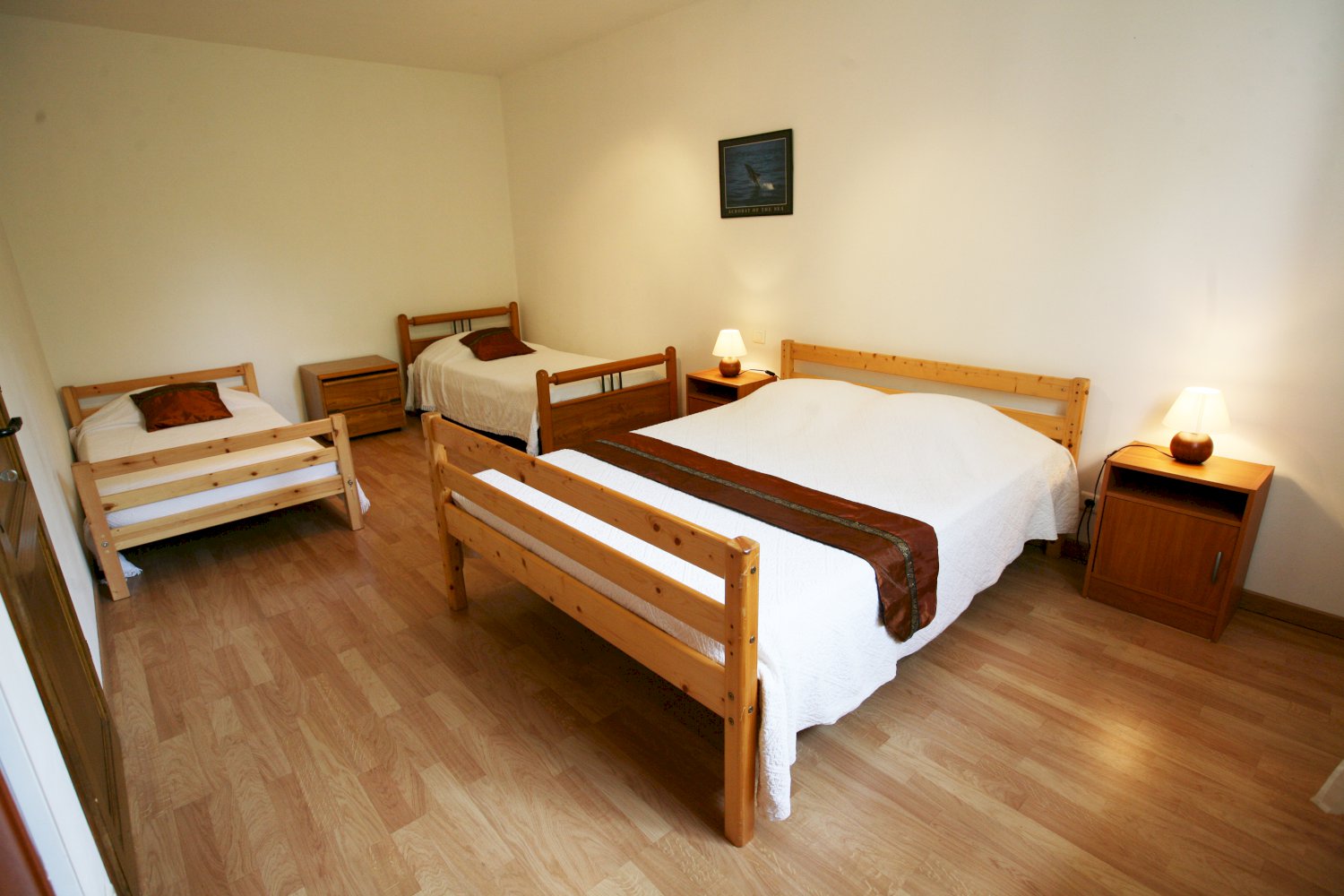 - Grande chambre avec lit double + 2 lits simples et placard mural